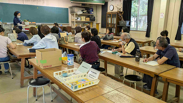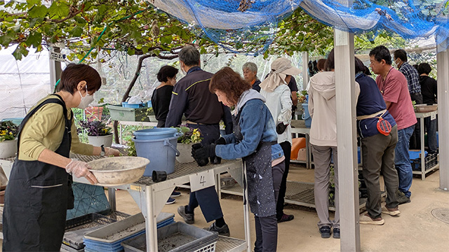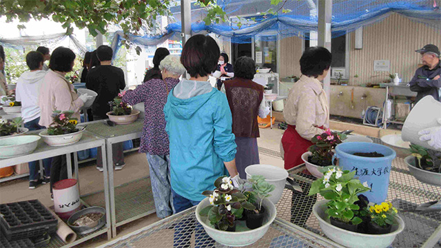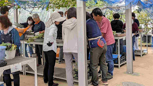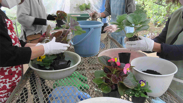 ・講師から説明を受けた後、参加者が材料を植え込んだ後、さらに、講師から個別にアドバイスを受けました。