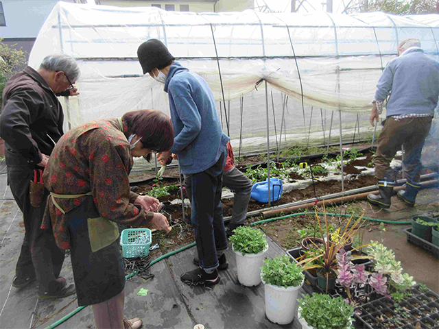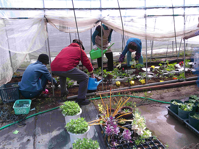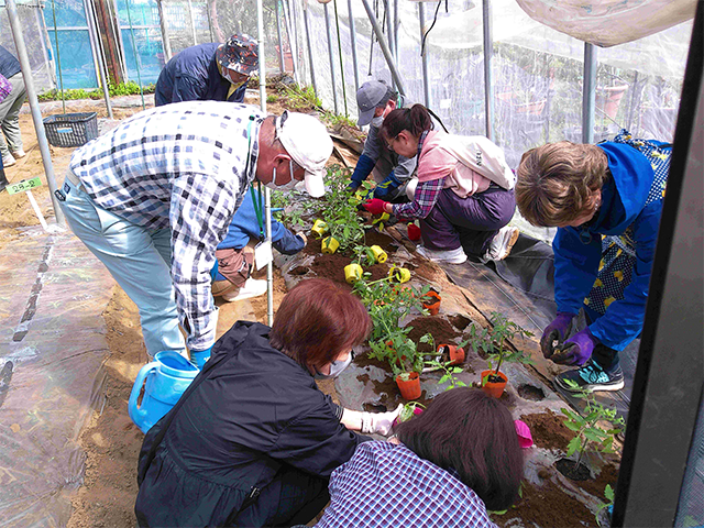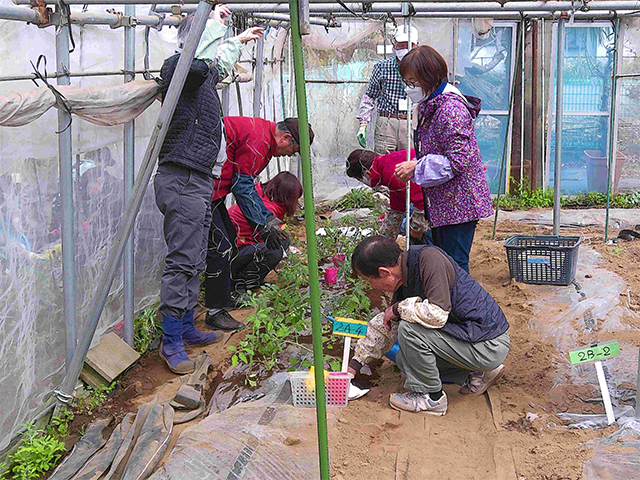 教授のレクチャーの後、各班に分かれて栽培活動に励みました。