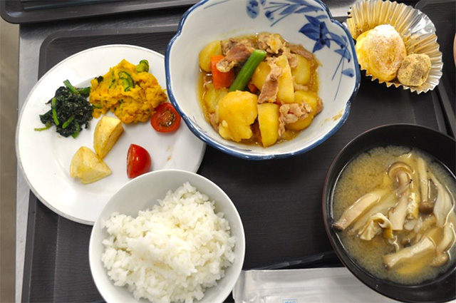 本日のメニューは肉じゃが、かぼちゃサラダなど