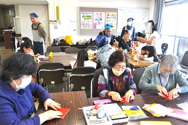 折り紙を指導してくれる卒業生団体の「柏福祉会」