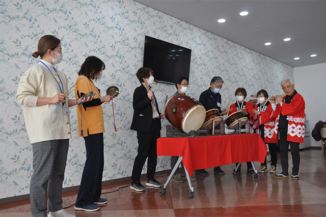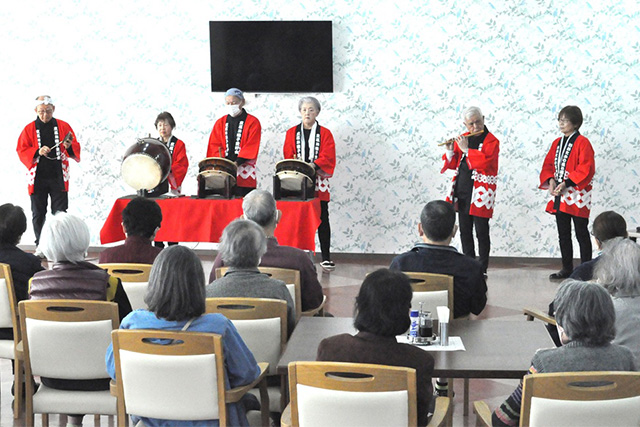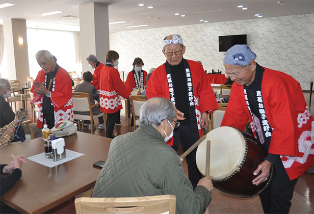 入居者の皆さんも太鼓演奏などを体験