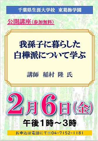 東葛飾学園では、今春4月から入学を希望される方々を対象に、願書受付締切日の2月6日(金)に学校説明会(オープンキャンパス)と公開講座を開催します。お気軽にお問い合わせ(04-7170-0500)ください。