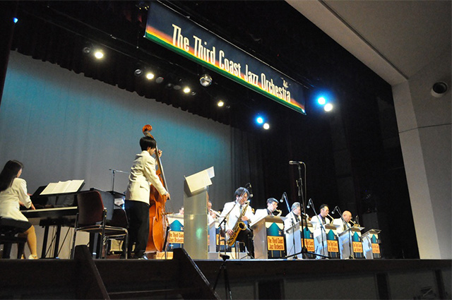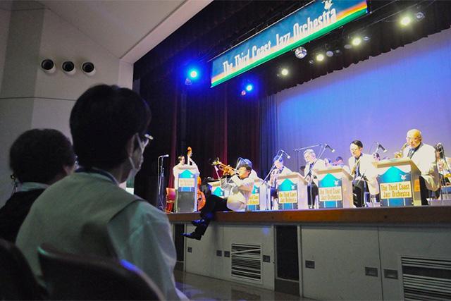 毎年、この季節に企画段階から関わらせていただいているチャリティライブ。出演されたジャズオーケストラは、船橋や松戸など東葛飾学園の通学区を中心に活動を続けている社会人の皆さんで構成されています。バンド名は船橋のシンボル「三番瀬」に由来しています。有名なスタンダードナンバーの『A列車で行こう』ではなく、オリジナルの『J列車で行こか』など耳に馴染みの曲からオリジナルナンバーまで17曲とアンコール曲をテンポよく披露。休憩をはさみ2時間半のステージを楽しみました。このライブは、昨年は食材費の高騰などを受け、こども食堂支援と言う形で行われましたが、今回は能登半島地震から2年半近くが経過しても復興がなかなか難しいことから企画されました。募金箱にお寄せいただきました110,370円の浄財は全額、被災地に届けられます。音楽が 持つ力と、ご来場くださったお客さまの思いが重なり、復興へのエールとなり、被災地の方々に一日も早く日常が戻ることを心から願っています。