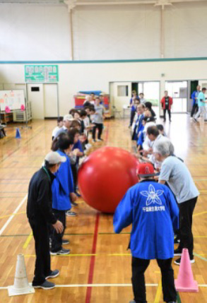 今年度は実行委員会の主催で、体育祭を『すこやかレクレーション(すこレク)』と名付けました。約100名の学生が紅白に分かれ「バトミントン羽根送りリレー」「お邪魔玉入れ」「バレーボール送りリレー」「大玉送りリレー」「シークレット競技」の5種目を競い合いました。