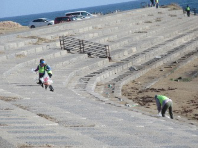3グループに分かれて、君ヶ浜しおさい公園を中心に海岸、雑木林などを清掃し、大量のゴミが回収されました。中でも大型液晶テレビ、スーツケースが出てきたことには驚かされました。