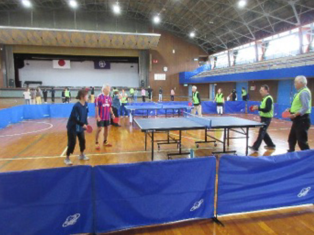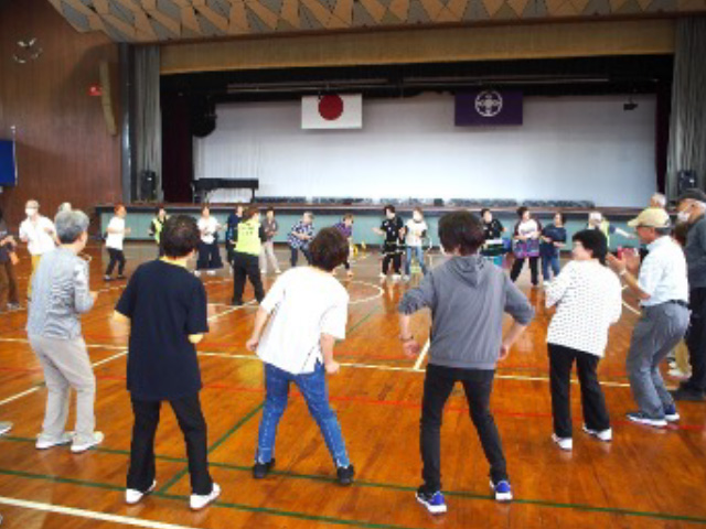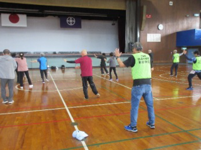 やっと秋らしい気候となった10月18日(土)に、銚子市体育館を会場として、当学園クラブ活動の会員や経験者による指導のもと、100名を超える参加者の皆さんが「スポーツ吹き矢」、「太極拳」、「卓球」、「ピアダンス」、「スカットボール」の各種目で、気持ちの良い汗を流しながら交流を深めました。最後には、みんなでフォークダンスを踊りました。